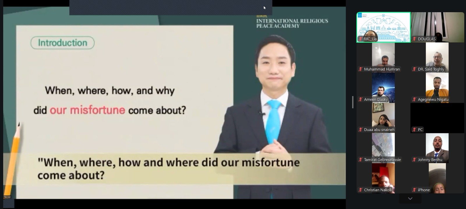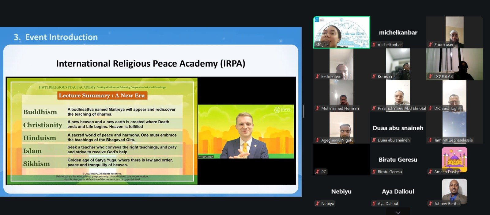استضافت HWPL، وهي منظمة سلام دولية غير حكومية، أكاديمية السلام الدينية الدولية (IRPA) يوم الجمعة 28 نوفمبر 2025 عبر الإنترنت، تحت شعار “التفاهم بين الأديان: الطريق نحو الانسجام”. وقد عُقد هذا الحدث لتعزيز الحد من النزاعات والتفاهم المتبادل بين المجتمعات الدينية في منطقة الشرق الأوسط وشمال أفريقيا، بمشاركة قادة دينيين وأعضاء من المجتمع المدني من الإمارات العربية المتحدة وإثيوبيا.