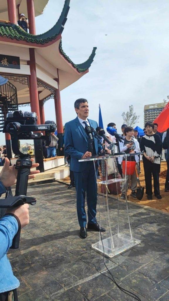 أشرف سفير جمهورية الصين الشعبية لدى الجزائر السيد دونغ قوانغلي، على عملية غرس 500 شجرة زيتون في حضيرة (دُنيا بارك) المعروفة بحديقة الصداقة الصينية الجزائرية، وذلك بالتنسيق مع جمعية الصداقة الجزائرية الصينية وولاية الجزائر العاصمة. ورافق سعادة السفير كل من والي الجزائر السيد محمد عبد النور رابحي، ورئيس الجمعة البروفيسور إسماعيل دبش، ورئيس اتحاد الشركات الصينية في الجزائر وعديد المسؤولين الجزائريين والصينين، وقد أُعطيت إشارة إنطلاق العملية من أمام المعلم التدكاري الصيني وسط الحضيرة.