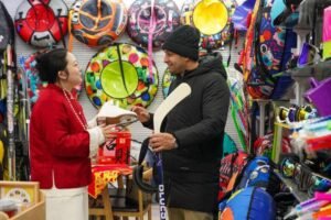 كريس، تاجر من لندن، يزور ييوو منذ عشر سنوات، وقال بأنه يأتي إلى ييوو كل عام لشراء أكثر من 100 حاوية من البضائع المختلفة. وذكر بأنه قد رأى خلال العام الحالي، العديد من المنتجات الجديدة، مبديا استعدادا لشراء المزيد.